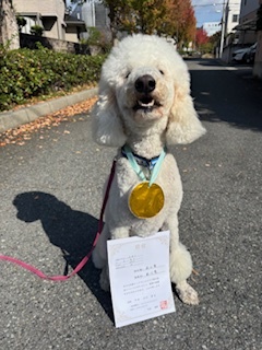賞状はもらえませんでしたが、久しぶりにご機嫌さんな桃ちゃん頑張ってくれました!メダルもゲット!...は桃ちゃんのクラスはチワワのリクくんとの2頭だけでしたので...(笑)