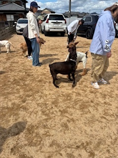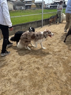 ナナちゃんは何回か参加してくれています。お母さんがとにかく真面目で頑張ってくださり、面倒見もいいのでしょう。そんなお母さんに育てられたナナちゃんは天真爛漫で元気一杯です。少し繊細な部分はありますが、とても賢いです。大人になったても落ち着く気配は全く見えず飼い主さんとしては大変ですが、訓練士としてはめちゃくちゃ楽しいです。今回はナナちゃんを安定役になっていただきました。ナナちゃんを他の飼い主さんが見てナナちゃんに少しでも近づきたいなど何か感じてもらえればとナナちゃんを指名しました。そんなナナちゃんも最初から賢いわけではなかったですし、最初は人が大好きなので人にしかいけなかったのですが、最近では他のワンコとずいぶん絡めるようになってきました。