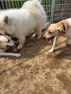 吠えるなどの問題行動もでるワンコも多いのですが、無邪気で素直な状態を維持できています。...振り回されている感じもみえますが...(笑)