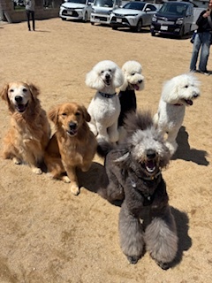 スタンダードプードルのホイップくん!初参加のスタンダードプードルのオムレツちゃん!ゴールデンレトリバーのキナコちゃん!