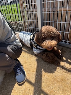 とても良かったです。そんなバロンくん遊ぶのも大好き。今回も楽しんで!...のはずがこれまたお母さんから離れない。お母さんのそばの時のバロンくんの表情。ほへーってかんじの表情でした。(笑)バロンくん!男の子でしょ!って突っ込みたくなりました。幸せそうな表情で訓練士としては嬉しいのですが。(笑)